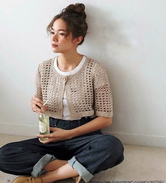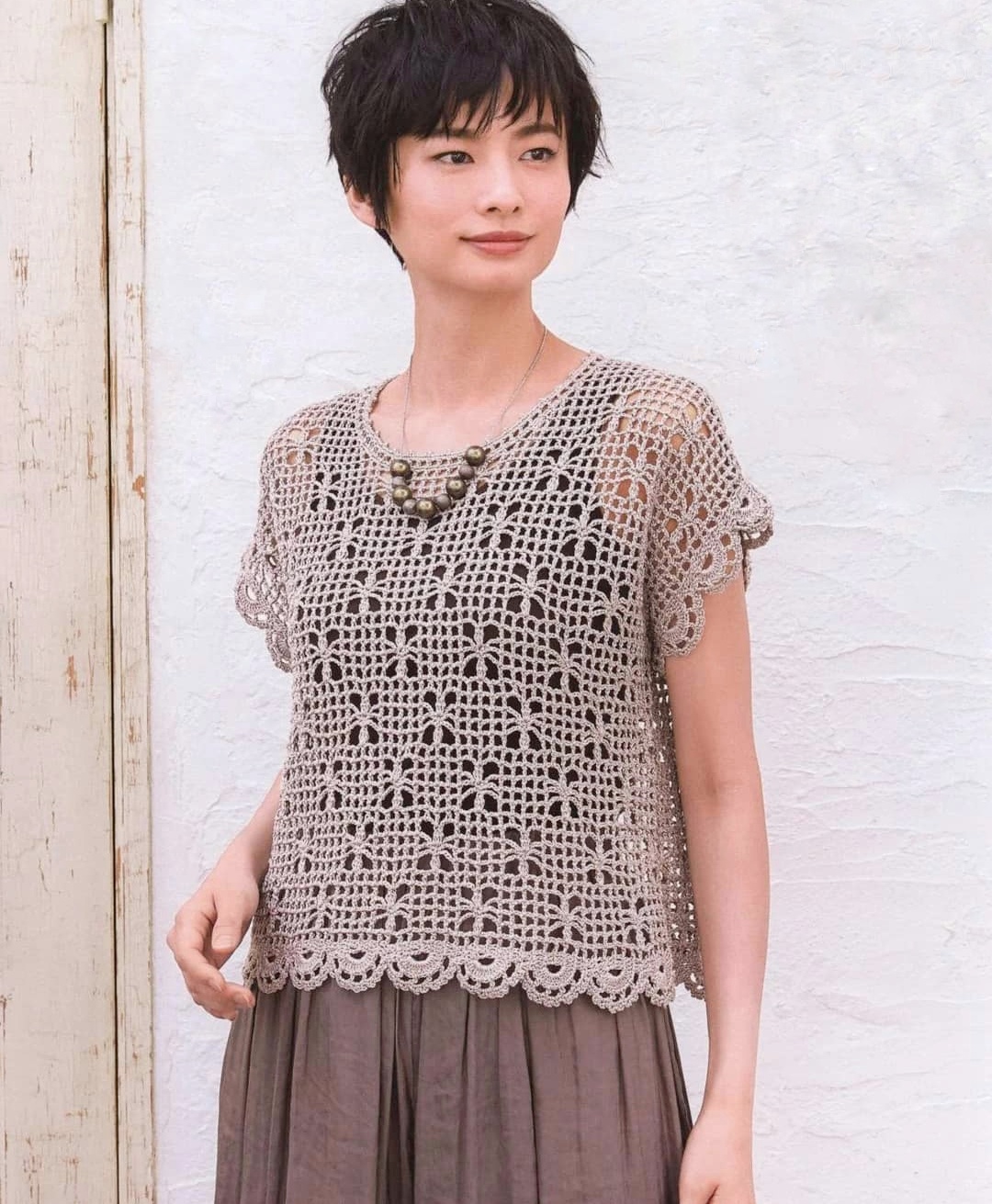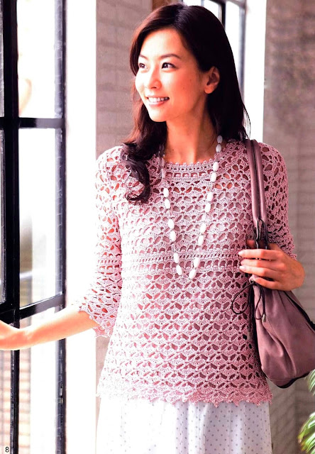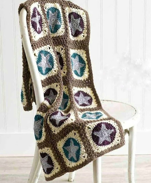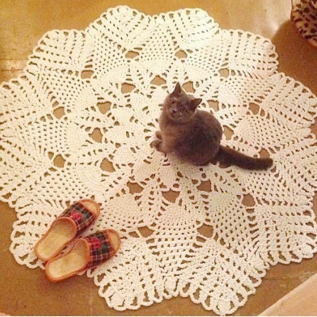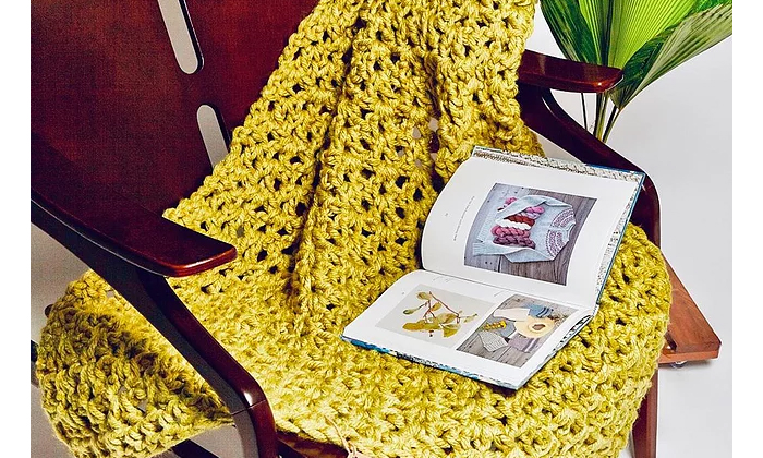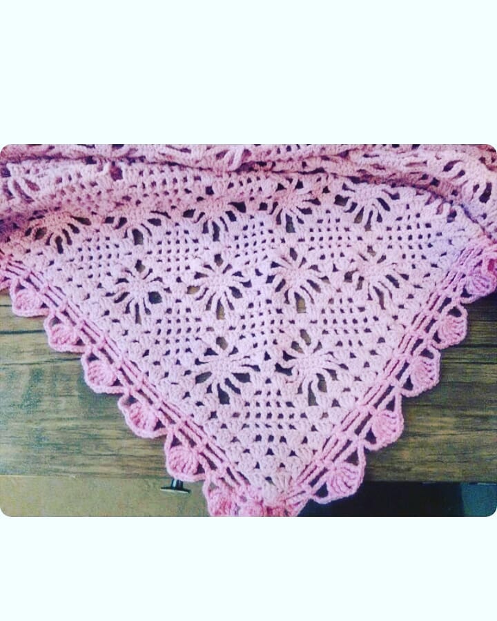 Matériaux utilisés: Fil Melrose de Pingouin : 7 écheveaux de couleur 9603 (Pampa) Crochet : 1 aiguille de 12 mm